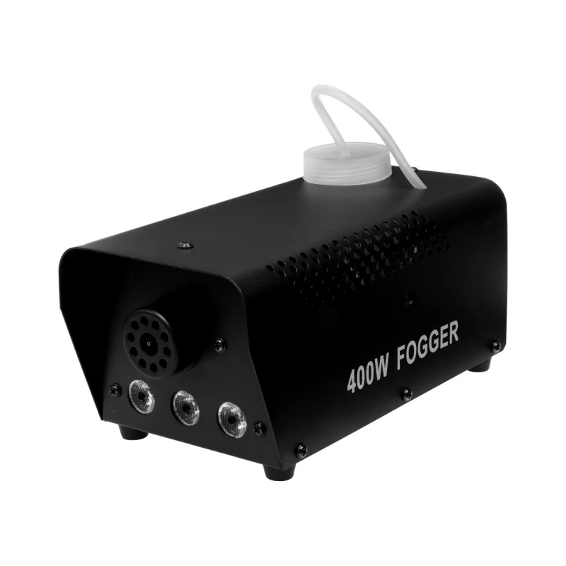 FS400W به همراه یک کنترل از راه دور عرضه میشود و به کاربران امکان میدهد تا میزان مه و افکتهای نوری را به راحتی از فاصله دور کنترل کنند. این ویژگی به خصوص در رویدادهای زنده و مکانهای بزرگ بسیار کاربردی می باشد. مدت زمان پیش گرمایش ، یک فاکتور مهم و حیاتی در بین دستگاه های مه ساز می باشد. این زمان در FS 400W LED Fog Machine هشت دقیقه می باشد و سریعتر از بسیاری از دستگاههای دیگر مه آماده استفاده می گردد. FS مجهز به مخزن مناسبی برای ذخیره مایع مه است که امکان استفاده طولانی مدت و بدون نیاز به پرکردن مکرر را فراهم میکند. این ویژگی به کاربر این اطمینان را میدهد که در طول مراسم نیاز به توقف و پرکردن مجدد مایع ندارد. برد پرتاب بخار بین 3 الی 5 متر بوده و در هر دقیقه 14 مترمکعب را از مه پر می نماید.