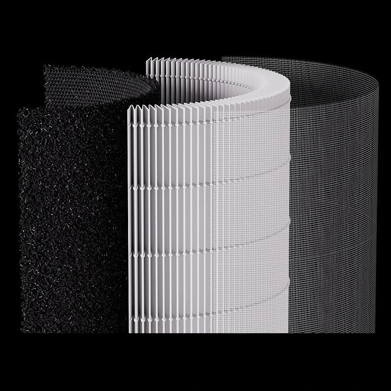 • فیلتر سه‌لایه : لایه اول : قابلیت فیلتر کردن گرد و غبار، مو، خرده های ریز در میان سایر ذرات بزرگ و مقاوم در برابر چین و چروک، روغن، اسیدها، قلیاها و … لایه دوم کربن فعال : قابلیت جذب و پاکسازی مواد شیمیایی مضر مانند فرمالدئیدها، بنزن، آمونیاک، بوها و دودها لایه سوم : قابلیت پاکسازی 99.98% از ذرات 0.3 میکرومتر برای خروجی هوای پاک