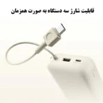 • خروجی : حداکثر 33 وات چندین پورت 5V⎓3A OUT1: 5V⎓3A 9V⎓3A 11V⎓3A 12V⎓2.5A 15V⎓2A 20V⎓1.5A MAX OUT2: 5V⎓3A 9V⎓3A 11V⎓3A 12V⎓2.5A 15V⎓2A 20V⎓1.5A خروجی ۳: ۵ ولت⎓۳ آمپر ۹ ولت⎓۲.۲۳ آمپر ۱۰ ولت⎓۲.۲۵ آمپر ۱۲ ولت⎓۱.۶۷ آمپر حداکثر