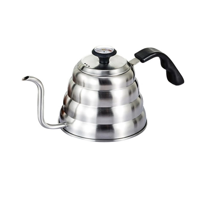 دهانه غازی شکل این محصول باعث می شود که کنترل دقیقی برای اندازه و جریان آب داشته باشید. لایه داخلی فولاد ضد زنگ 304 می باشد که پس از جوشیدن، طعم و بوی آب را تغییر نمی دهد. قسمت انتهایی این محصول از فولاد ضد زنگ مغناطیسی بوده که روی انواع اجاق گازهای معمولی قابل استفاده بوده و حرارت را بسیار سریع منتقل می نماید. در زمان استفاده و ریختن آب جوش می توانید مطمئن باشید که قفل درب کتری بسیار محکم بوده و باز نخواهد شد. بنابراین از لحاظ ایمنی در سطح بالایی قرار دارد. این محصول برای افراد حرفه ای است! اگر می خواهید آب را در یک دمای دقیق به جوش بیاورید تا یک قهوه ی بی نقص دم کنید، دماسنج روی درب کتری، به کمک شما می آید. بدنه کتری به راحتی تمیز می شود و هیچ لکه و جای آبی به جا نمی ماند.